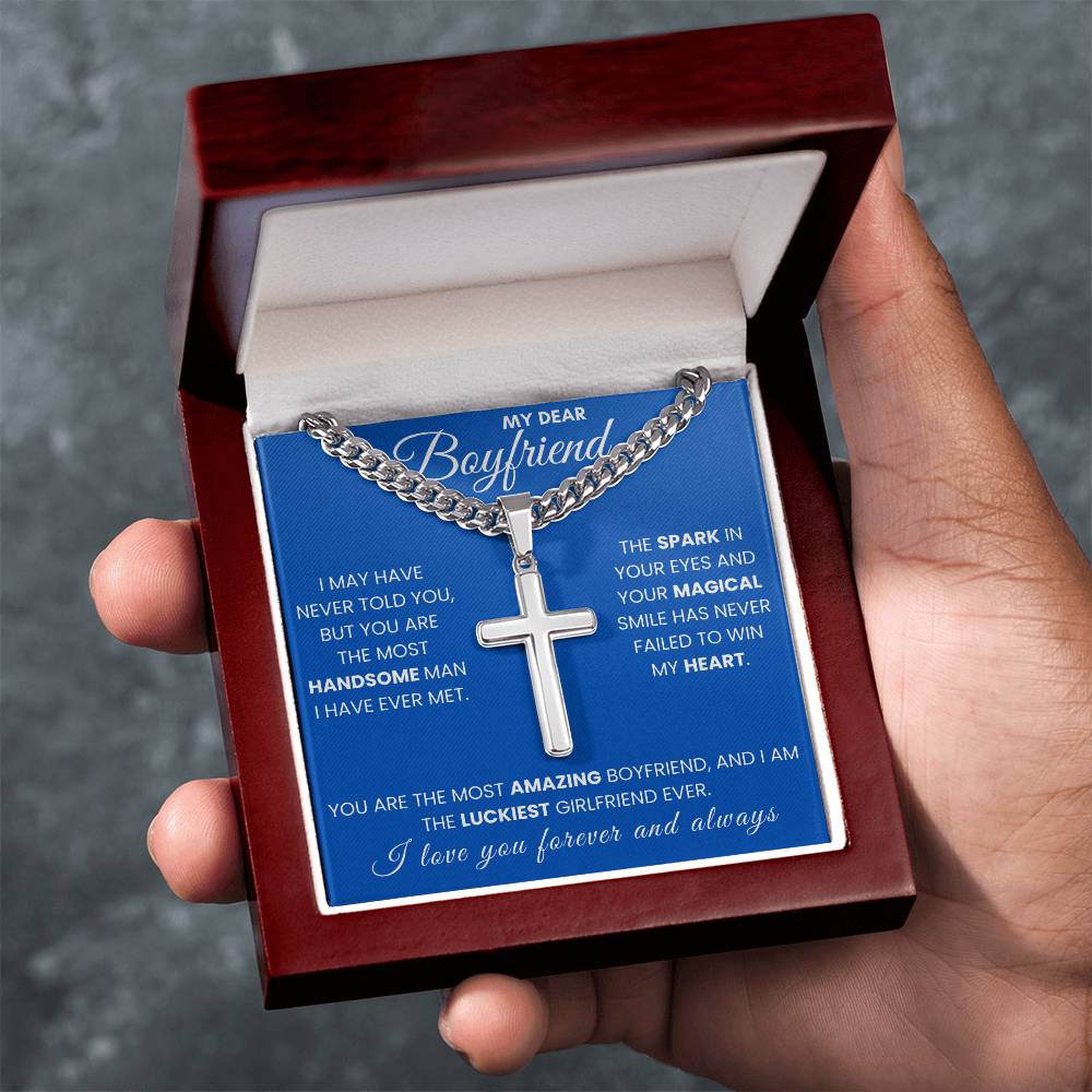 Celebrate your love and admiration with the “My Dear Boyfriend” Cross Necklace — a symbol of strength, devotion, and faith. Perfect for birthdays, anniversaries, or just to say “I love you,” this timeless piece reminds him how special he truly is to you.