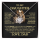 A powerful gift from father to daughter — a daily reminder of strength, love, and legacy. Featuring a radiant pendant on a bold lion-royal message card, this piece celebrates the unbreakable bond between a father and his princess.