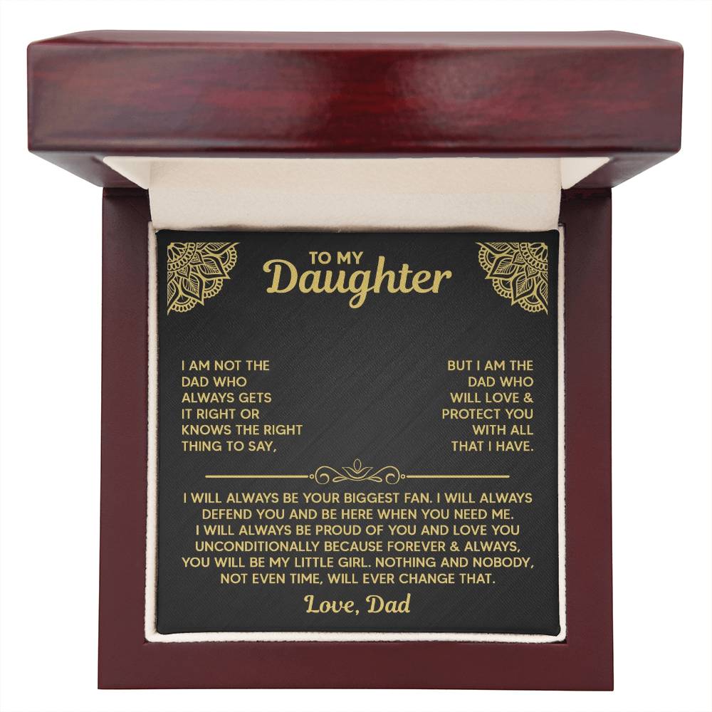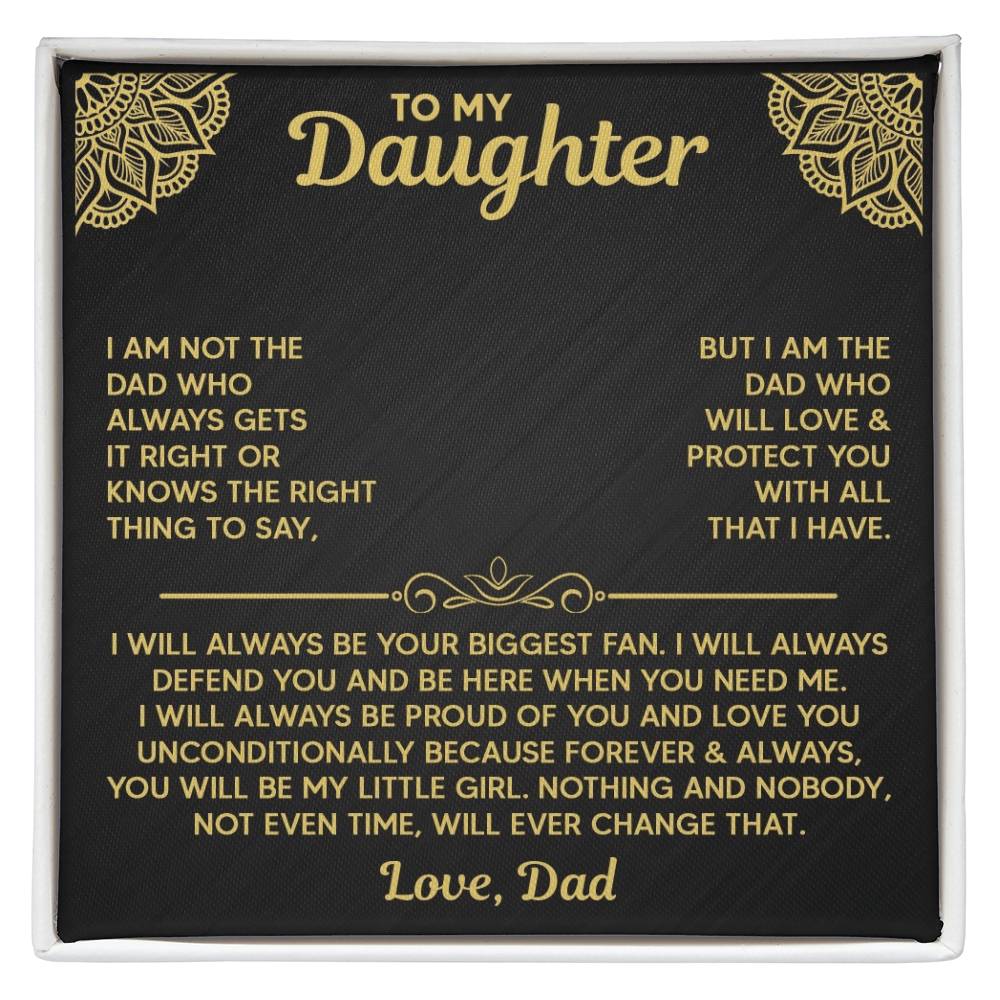 “I am not the dad who always gets it right or knows the right thing to say. But I am the dad who will love & protect you with all that I have. I will always be your biggest fan. I will always defend you and be here when you need me. I will always be proud of you and love you unconditionally, because forever & always, you will be my little girl. Nothing and nobody, not even time, will ever change that. Love, Dad.”